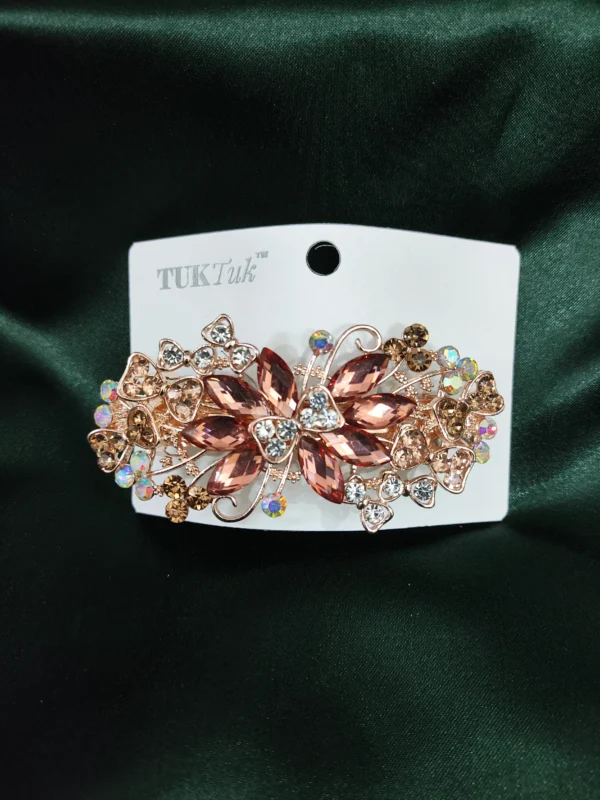 Gold Sparkling Floral Hair Barrette Rhinestone Crystal Spring Clip