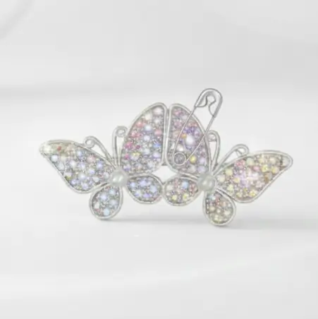 Sparkling Crystal Butterfly Saree Pin for Women Silver