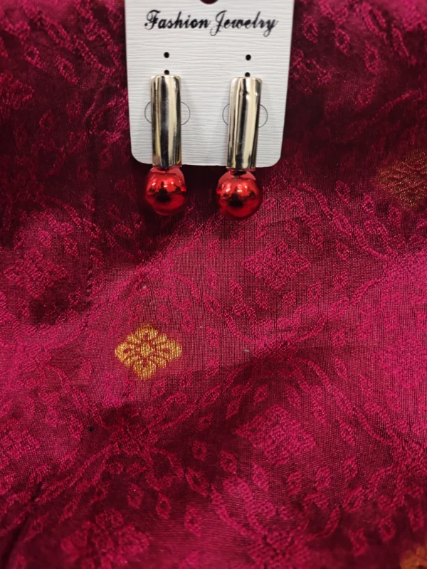 Elegant Red Ball Drop Earrings Gold Cylinder