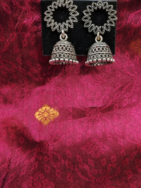Oxidized Silver Sunburst Jhumka Earrings