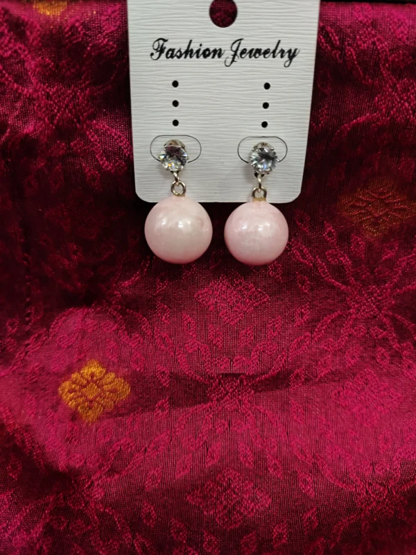 Pale Pink Marbled Bead Drop Earrings with Sparkling