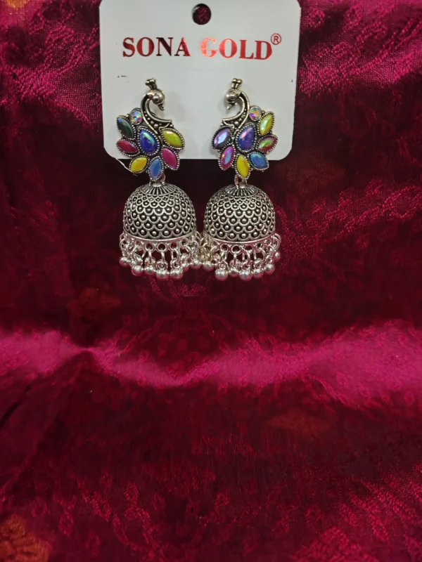 Tone Iridescent Crystal Jhumka Earrings with Diamond Stud