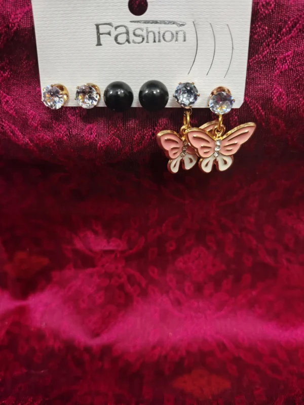 Loral Ruby Pink & Green Studs Butterfly Earrings