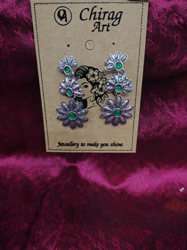 Antique Silver Toned Vine Design Jhumkas