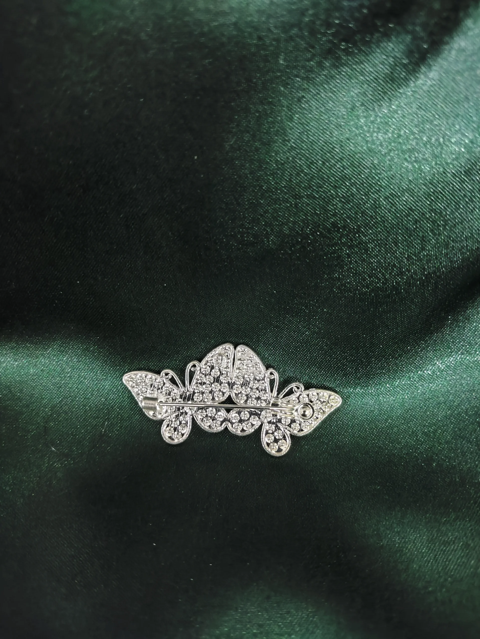 Sparkling Crystal Butterfly Saree Pin for Women Silver