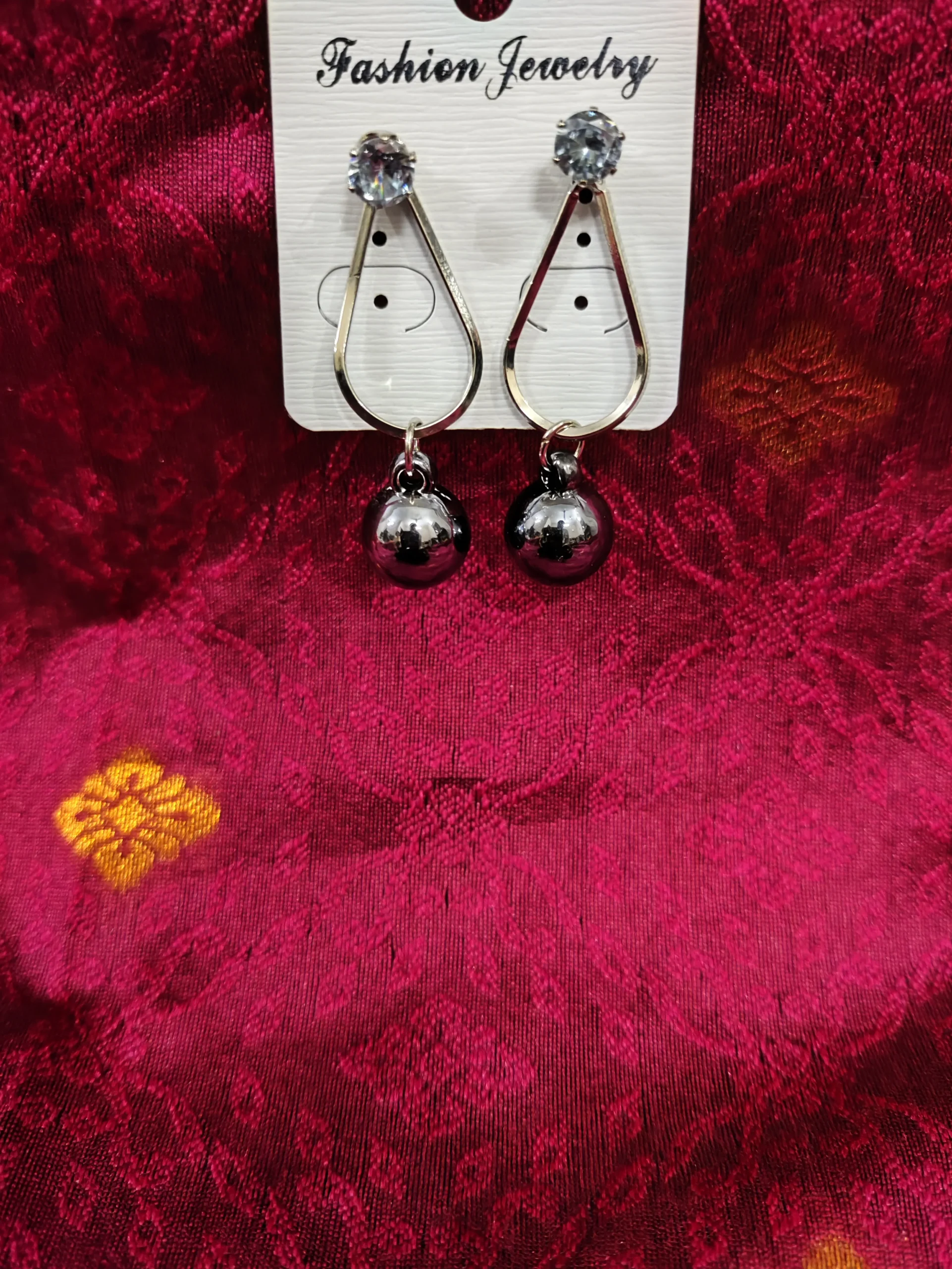 Teardrop Hoop Earrings with Metallic Gunmetal Bead Charms